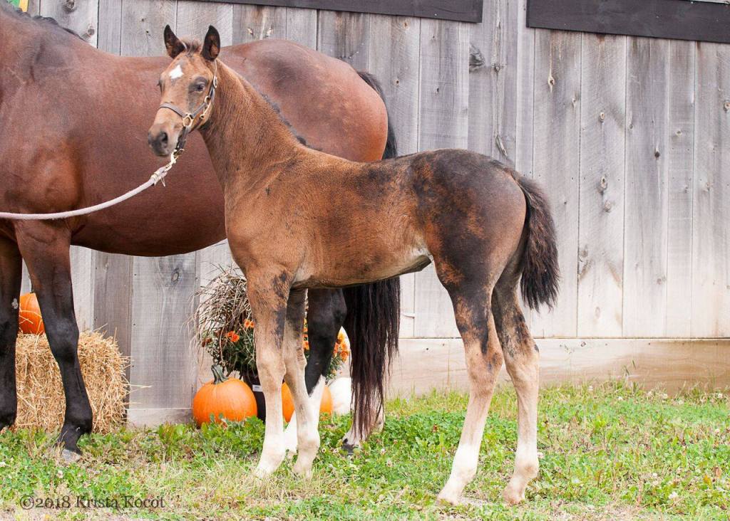 PERFORMANCE: He Achieved Lifetime Breeding Approval with CWHBA and CSH after completion of the CWHBA Stallion Performance Test in 2018. Highlights from the test were an overall 8 for gaits including a 9 for the walk. The Jump riders gave him an 8.5 and 9 for Rideability and 8 and 8.5 for Jumping Technique. J.F. Santerre and Michael Pegg concurred he had very good gaits, as well as good stride length and Scope for 3’6″ Hunters and Derbies and more. We are thrilled.