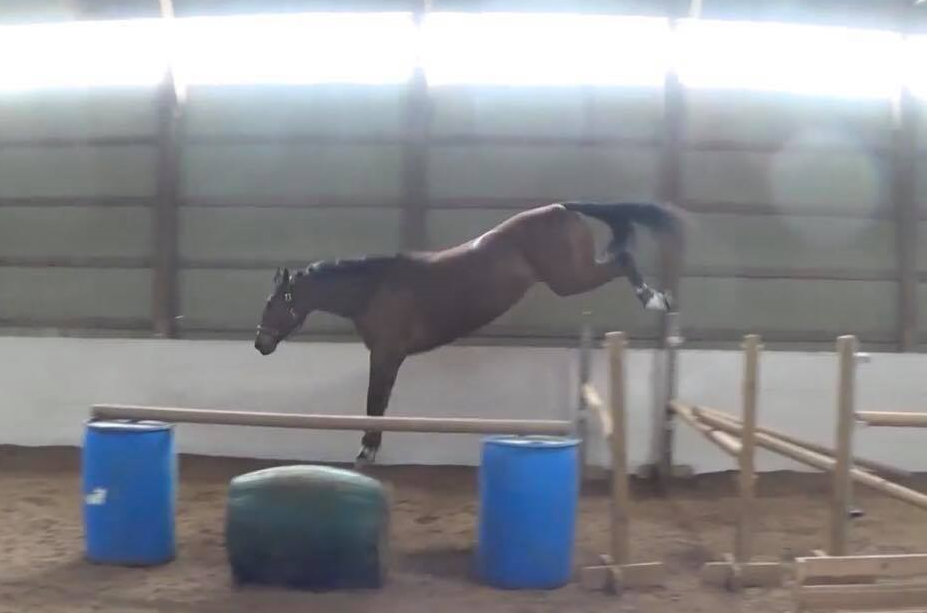 Bonbon comes from a family of talented jumpers including this mare West River in the video below, who is sired by Westporte, a dressage bred stallion that’s used predominantly for the hunter ring. She is a successful Eventer, winning the Indoor Eventing Challenge at the Royal Winter Fair with a crazy 16 second lead over two rounds. With her owner she was the highest placing Junior and highest placing Canadian at the CCI 1* at Bromont that same year with a 6th place finish. The family has tremendous power and athleticism and we have big hopes for Bonfilia to be developed to her potential over fences.