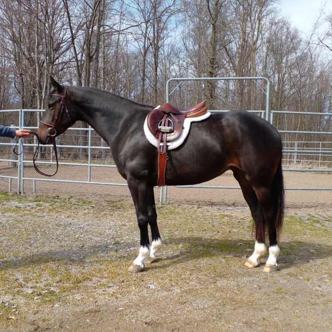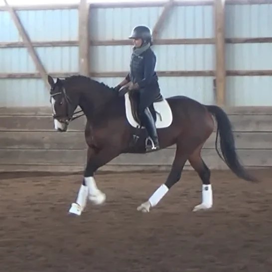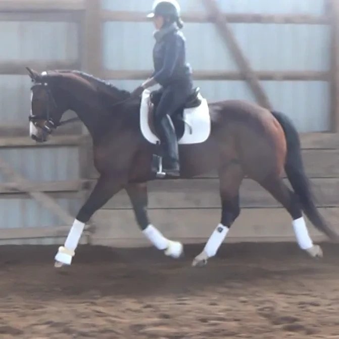 5 year old 15.2 HH Warmblood sweetheart of a mare. Dini as we call her in the barn is super brave with a great work ethic. She’s been off property to school, going well under saddle with 3 good gaits and a lovely jump. She’s been brought along carefully, available from the breeder and is now ready to graduate. She is by well known and superbly bred stallion Sir Gregory out of premium mare Rivalia by I am Graf .